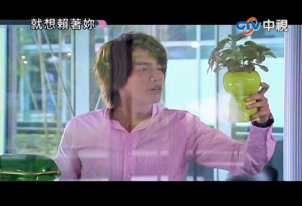 辦公室裡的羽平為了怕自己一時衝動又打電話,乾脆一不做二不休把手機藏到櫃子裡。眼睛瞄到旁邊綠色小人盆景,竟然就把它拿起來當成果果叨叨念了起來。